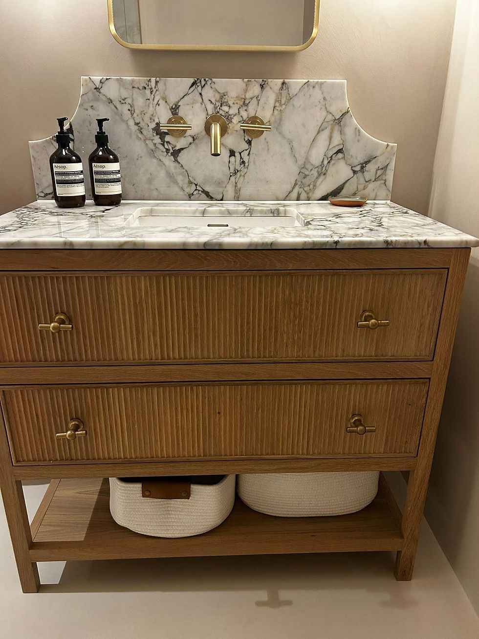 This house was a complete refurbishment. The Kitchen was classic contemporary, and the dark colours worked beautifully alongside the crittal doors. Even though it was a decent size space, we still had to consider the use of every space. We also built a Vanity Unit for the Bathroom to be in keeping with style of the Kitchen.
